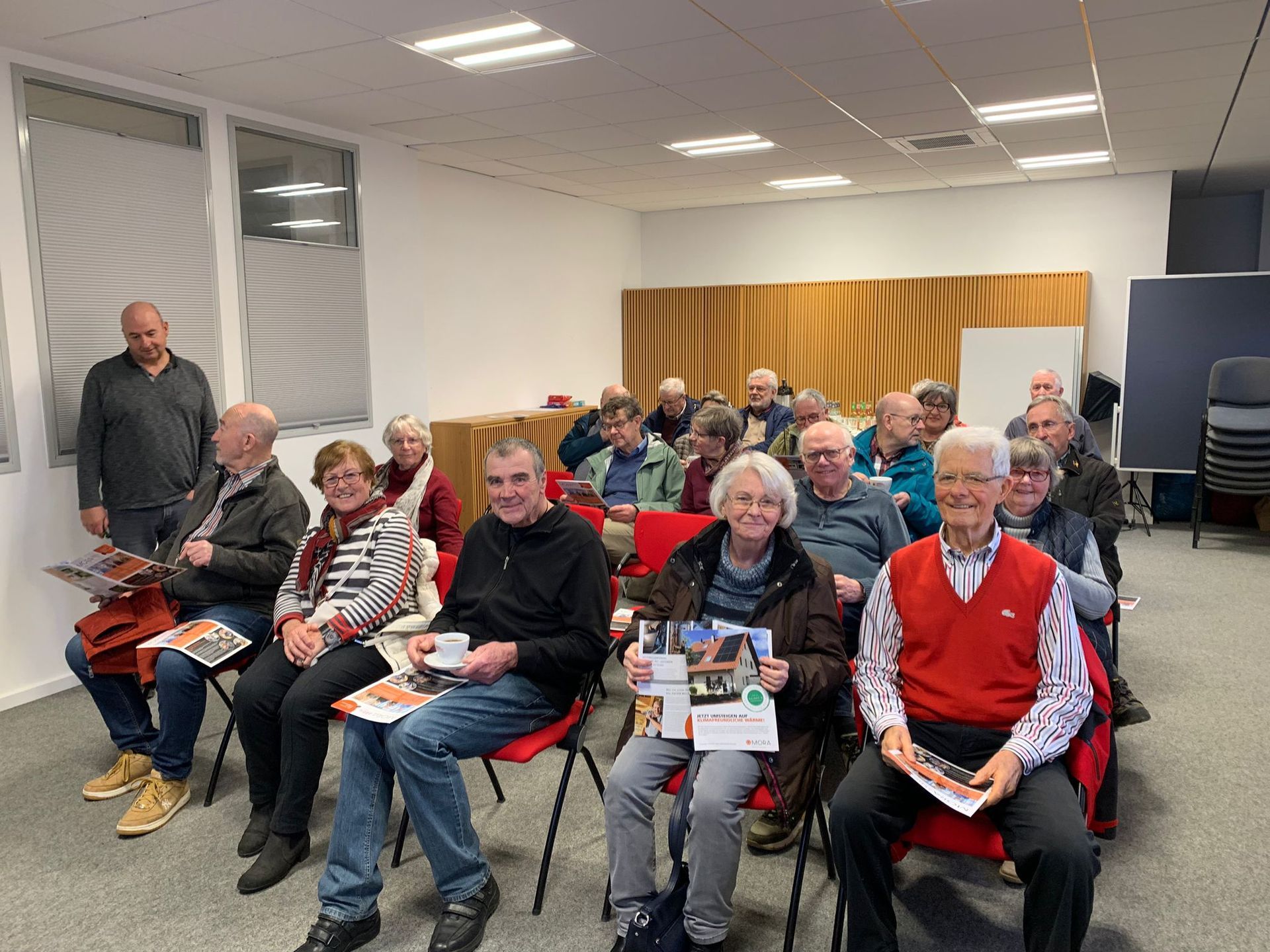 Anschließend konnten wir im Konferenzraum Platz nehmen. Der Vortrag von Herrn Rappenhöner war sehr spannend und aufschlussreif. Die Firma MORA beschäftigt inzwischen 78 Mitarbeiter (Techniker, kaufm. Mitarbeiter und Auszubildende). Wir haben erfahren, dass etwa jede Woche eine Badrenovierung durchgeführt wird. Das alles erfolgt mit eigenen Handwerkern. Die Firma beschäftigt inzwischen außer Heizungs-, Sanitär- und Klimafachleuten auch Dachdecker, Elektriker, Fliesenleger und Raumgestalter.