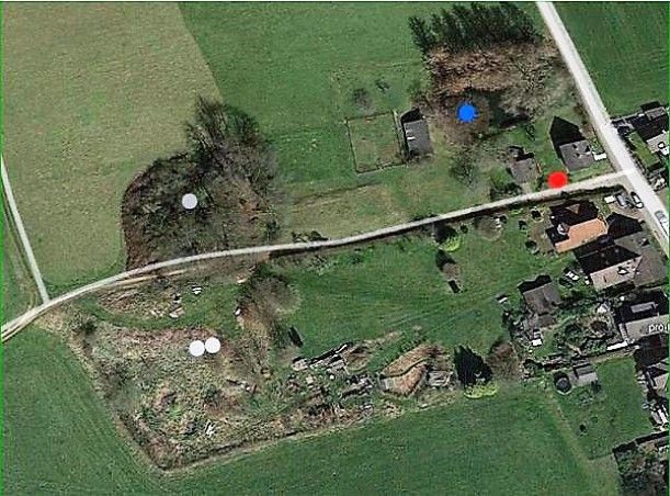 on the footpath towards Dürscheid/Steeg: the northern one is overgrown with a small wood (1 gray dot), the southern one is flatter and covered with shrubs (2 gray dots).
