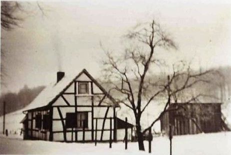 "The little house Katharinaglück was on the country road from Miebach to Dürscheid. The foreman of the brown iron mine used to live here. The tunnel went eastwards to the "Miebachs Hüuschen" family, the northeasternmost house in Obermiebach. Iron ore was dug there and transported through the tunnel on the railroad to Katharinaglück to the country road.