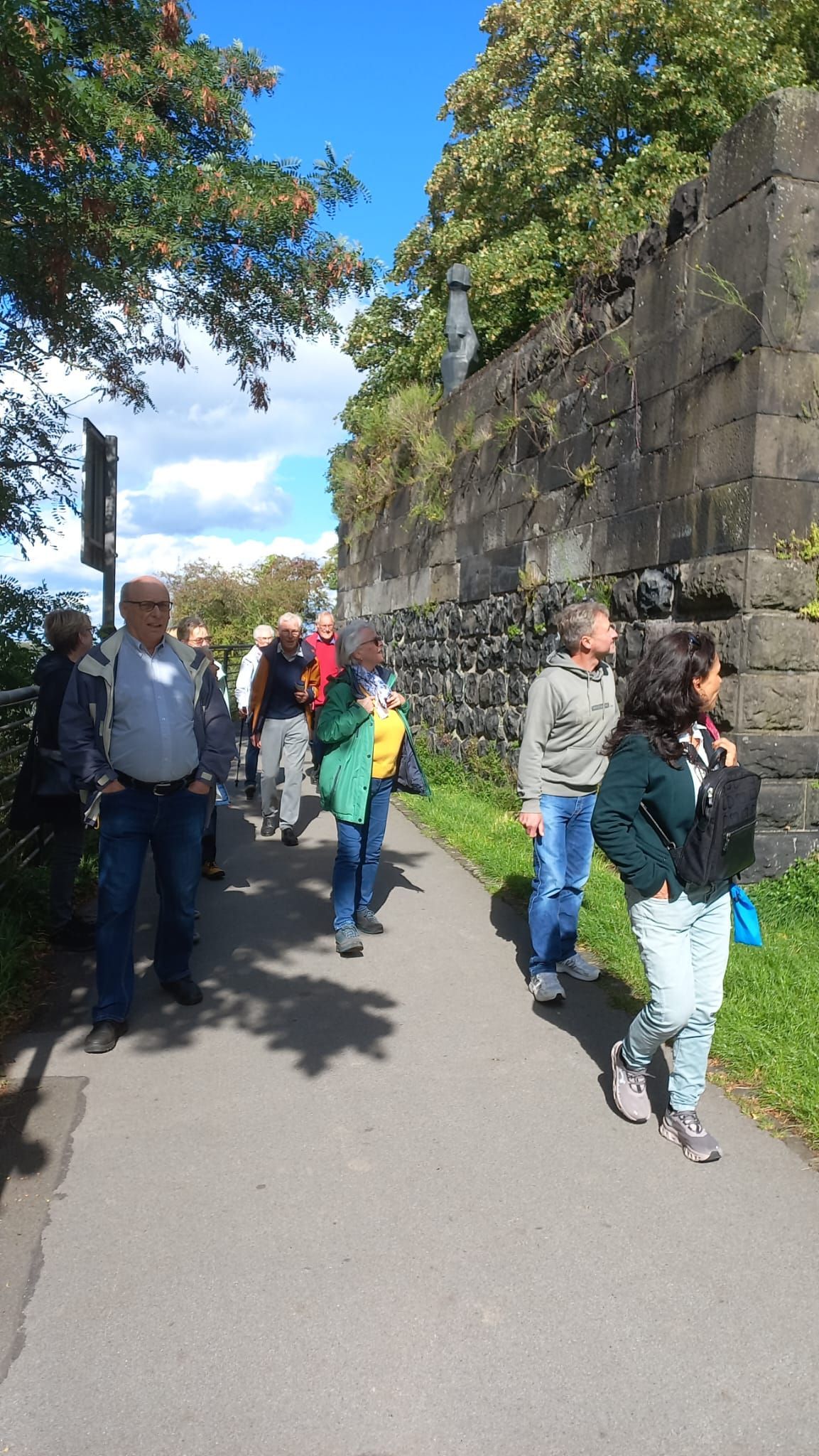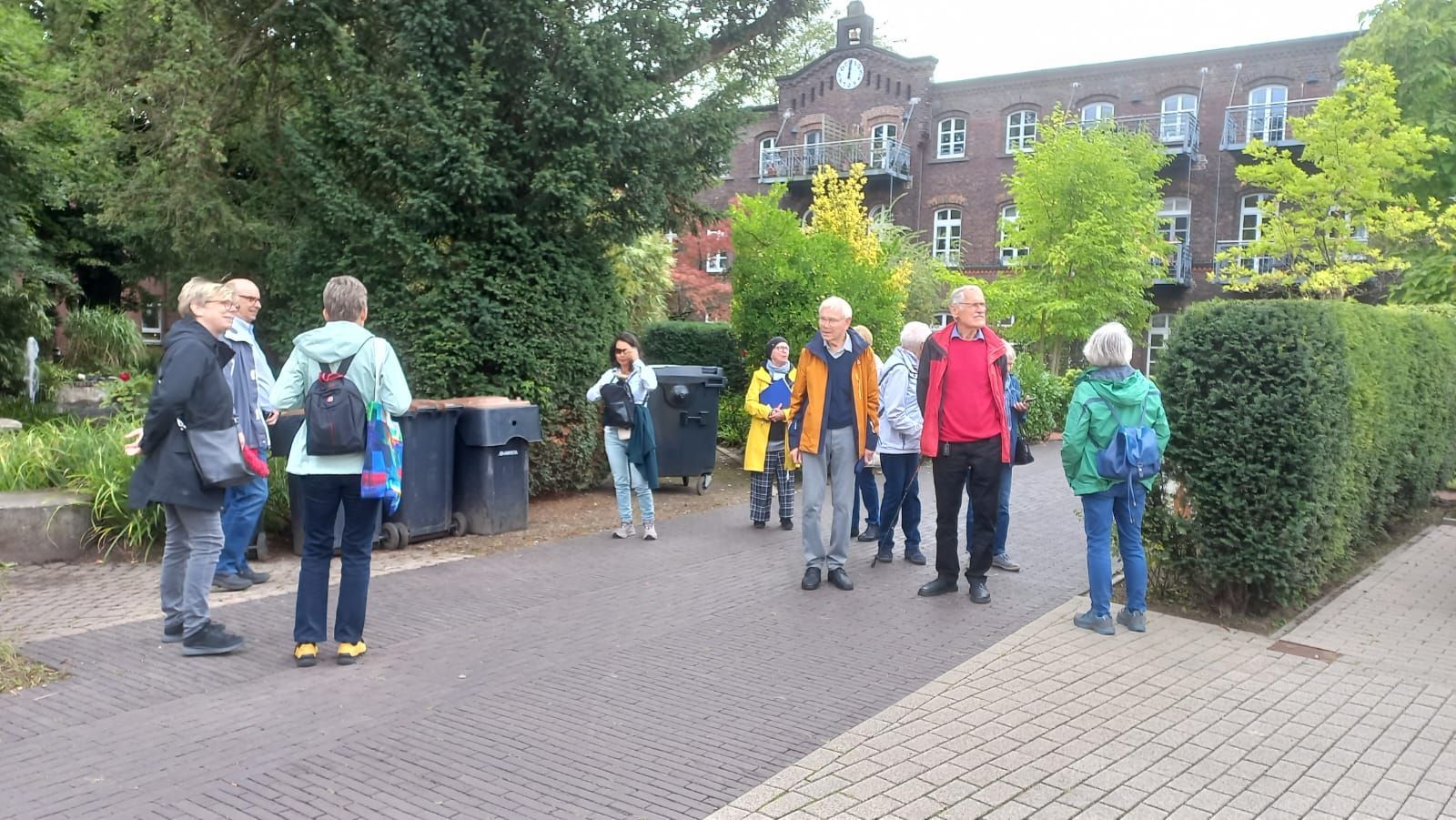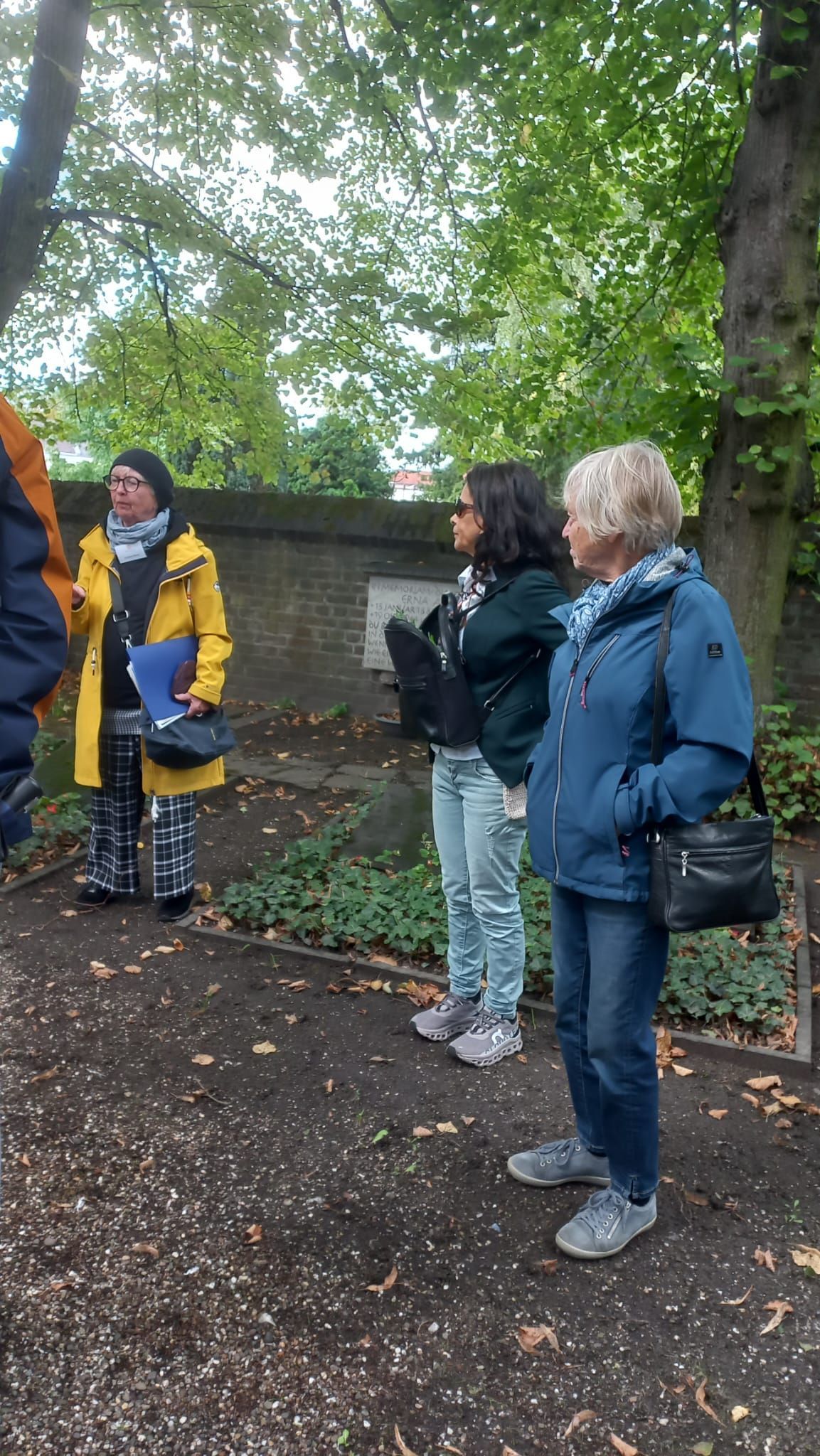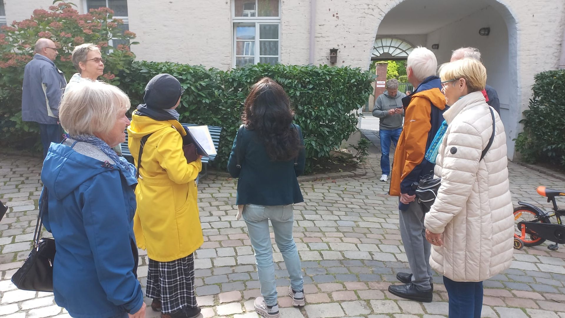 Frau Richarda Bremer von der Fliedner-Kulturstiftung Kaiserswerth berichtete anschaulich über die Anfänge der Pflege, der Entwicklung und das Wirken des Pfarrers Fliedner und seiner Frau Anfang des 19. Jh. Frau Bremer ließ die Vergangenheit lebendig werden, als die Gruppe über den Friedhof zu den Gedenktafeln an Familie Fliedner ging oder den Bunker für Kranke und Verletzte besichtigte. Die dreistündige Führung verging wie im Nu. Anschließend konnten wir das Museum besuchen, wo Exponate der Pflege bestaunt und die Entwicklung des Pflegewesens verinnerlicht werden konnten.