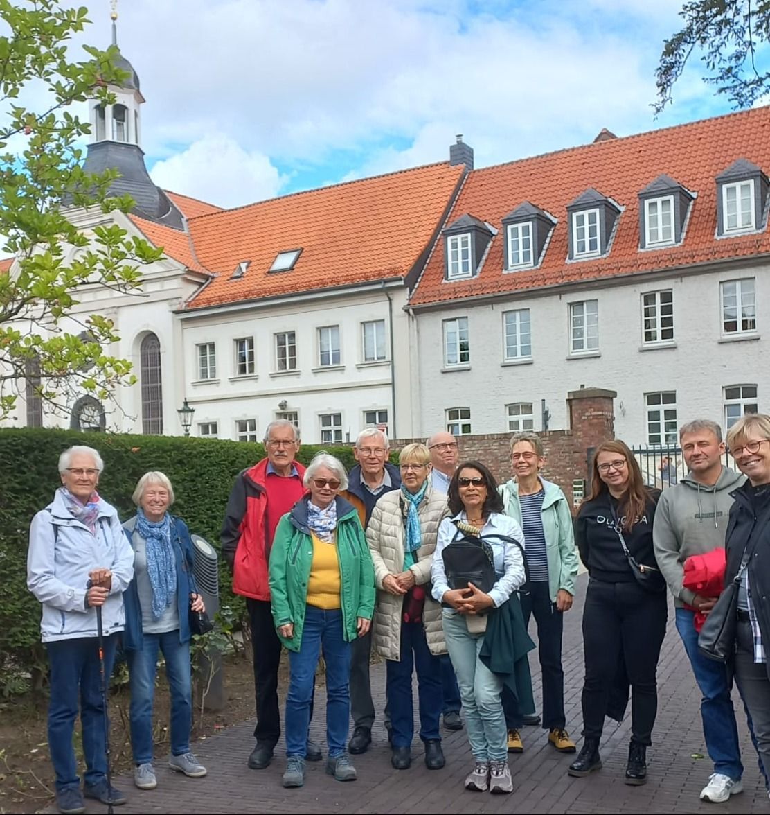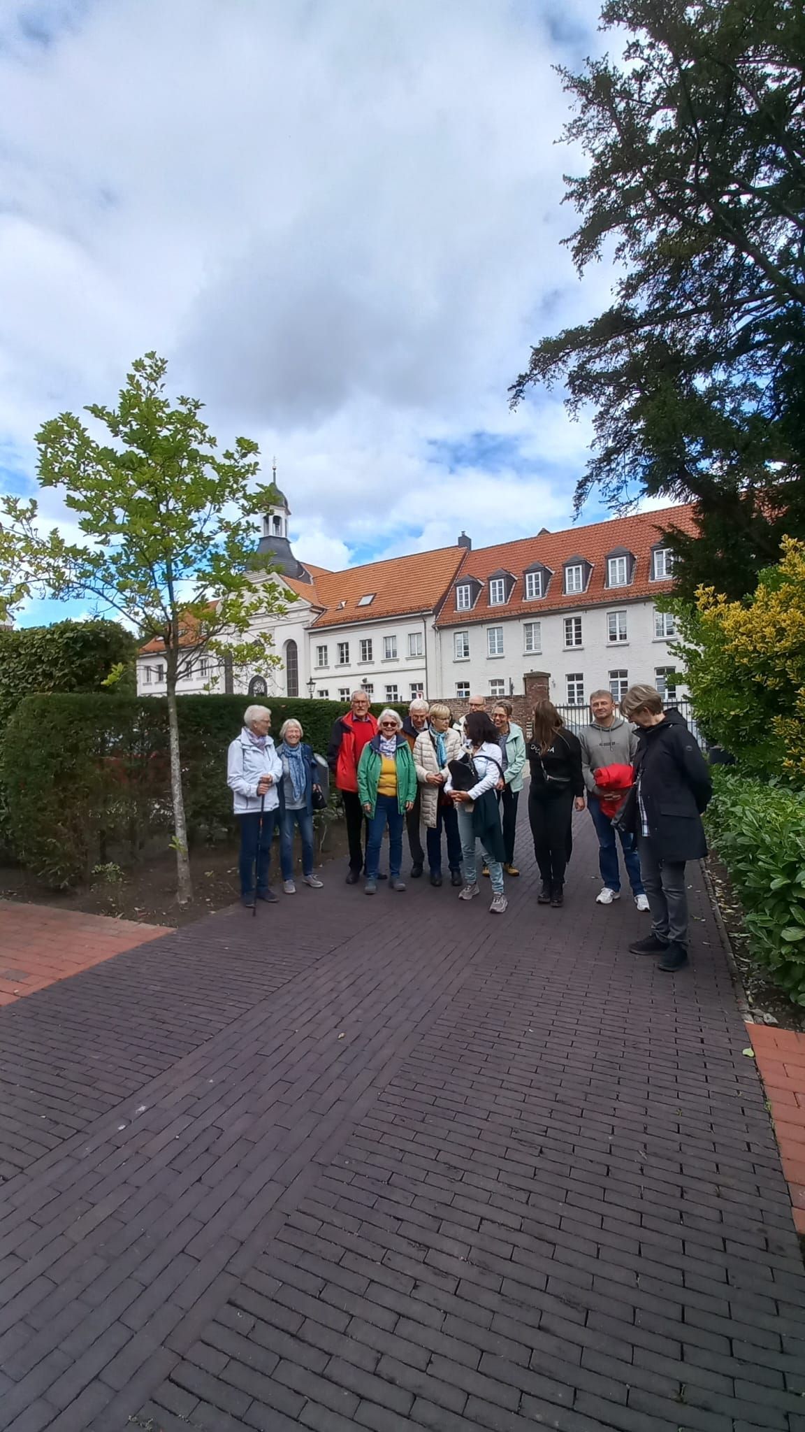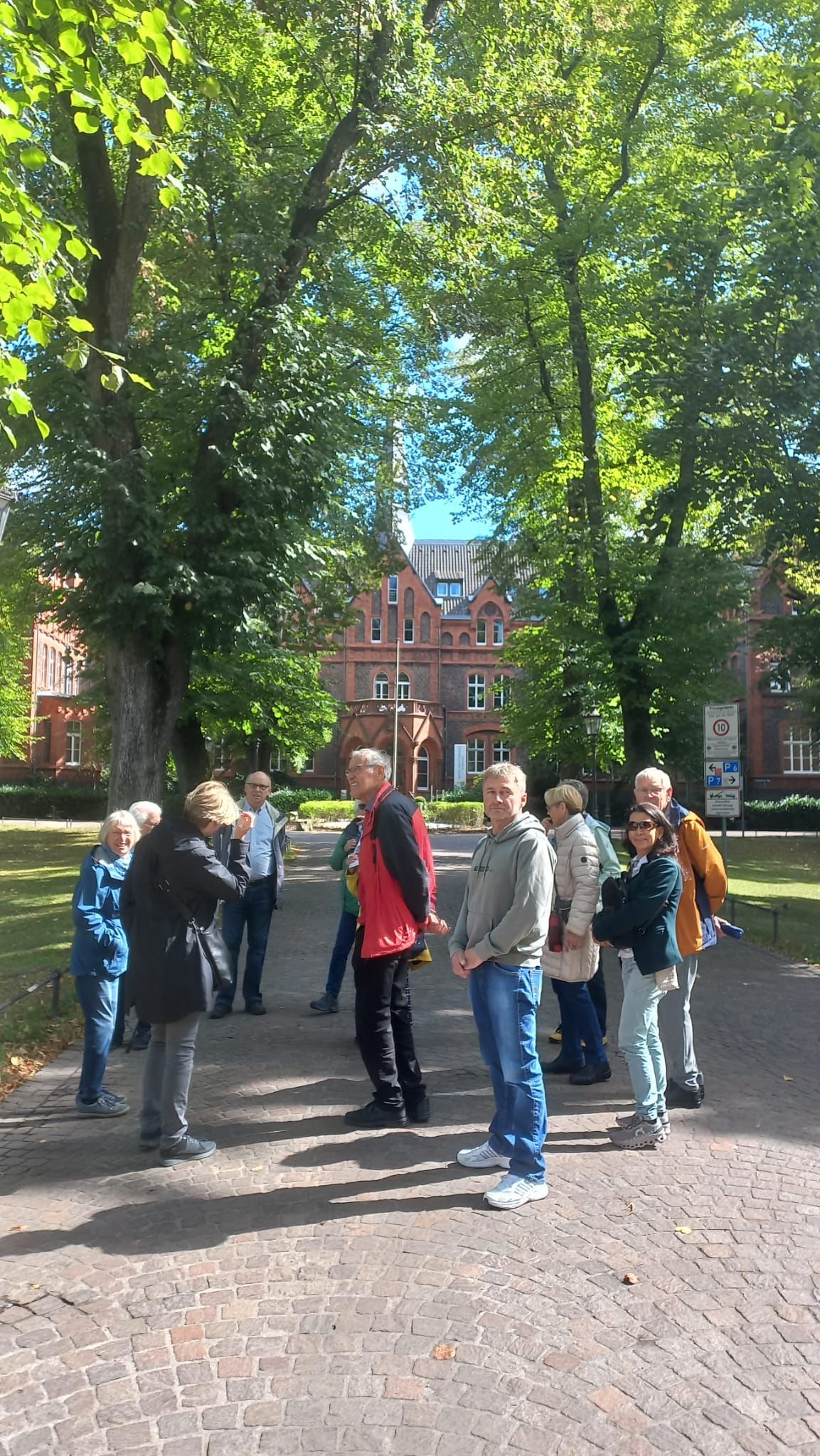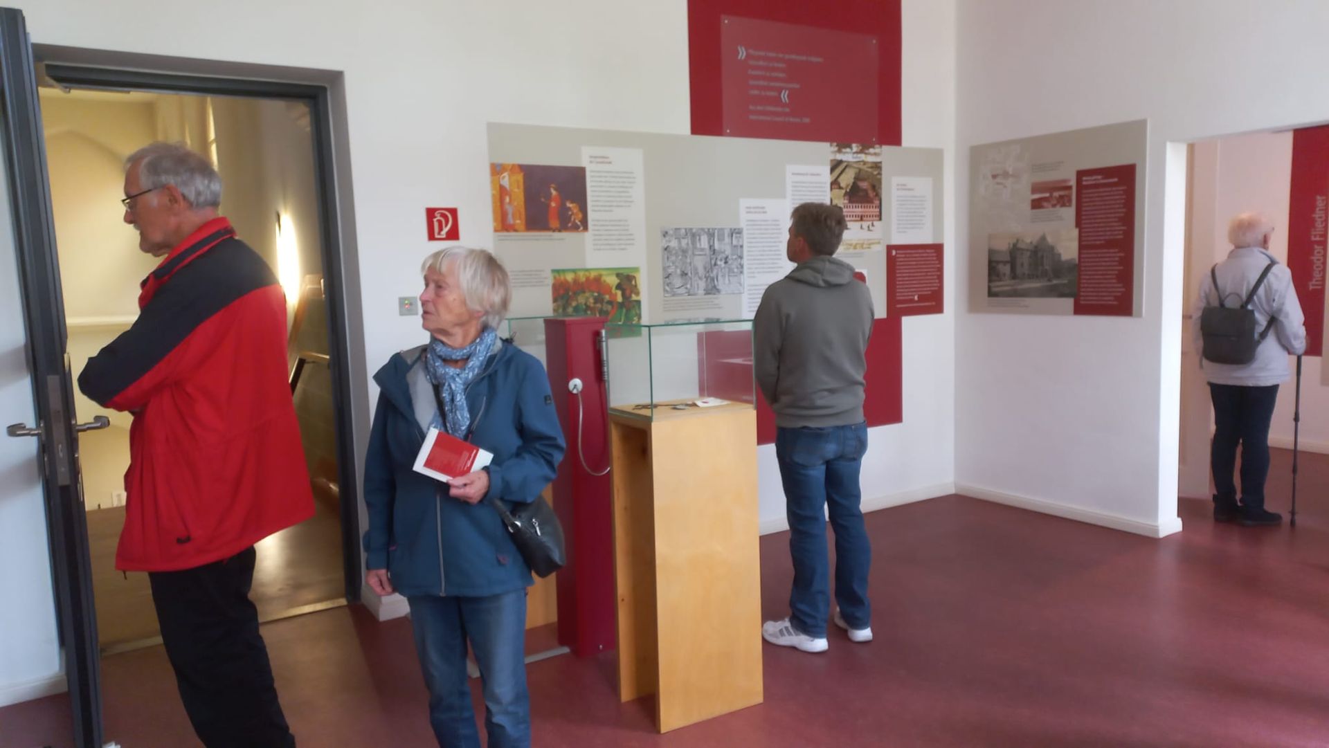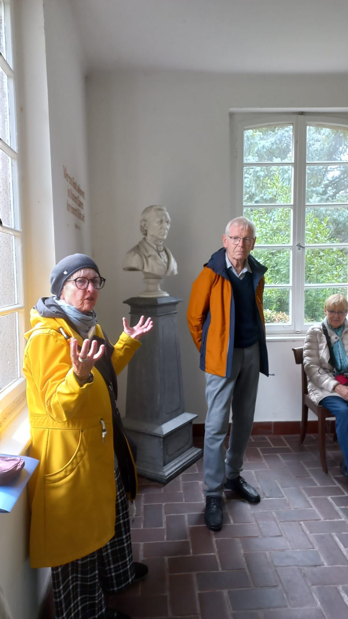 Frau Richarda Bremer von der Fliedner-Kulturstiftung Kaiserswerth berichtete anschaulich über die Anfänge der Pflege, der Entwicklung und das Wirken des Pfarrers Fliedner und seiner Frau Anfang des 19. Jh. Frau Bremer ließ die Vergangenheit lebendig werden, als die Gruppe über den Friedhof zu den Gedenktafeln an Familie Fliedner ging oder den Bunker für Kranke und Verletzte besichtigte. Die dreistündige Führung verging wie im Nu. Anschließend konnten wir das Museum besuchen, wo Exponate der Pflege bestaunt und die Entwicklung des Pflegewesens verinnerlicht werden konnten.
