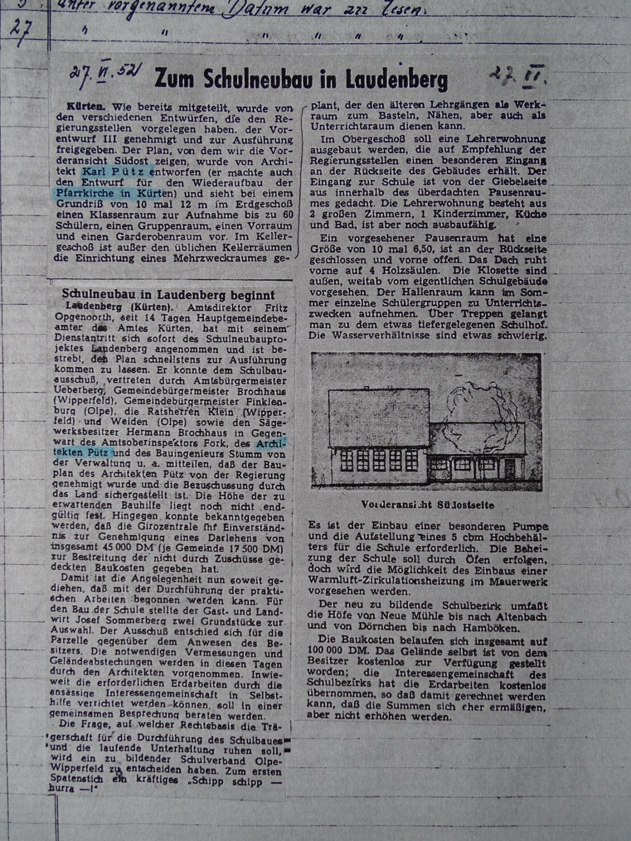 Viele Interessierte fanden sich am 30. August 2024 zum Vortrag von Dr. Norbert Stannek im Gemeindehaus Delling ein. Schon seit langem befasst sich der Architekt mit der Alten Schule in Eichhof. An diesem Abend stellte er die Ergebnisse seiner Forschungen vor, insbesondere vor dem Hintergrund der anthroposophischen Ausrichtung des damaligen Architekten, den die Gemeinde Kürten in den 50-er Jahren mit der Planung der Schule beauftragt hatte. Sehr anschaulich stellte Dr. Stannek die Pläne und den Bau vor. Insbesondere der Eingangsbereich und die Fensterformen sowie weitere Gestaltungselemente in den beiden Klassenzimmern weisen auf die anthroposophische Bauweise hin ebenso wie das große in Gelbtönen gehaltene Glasfenster mit einer Christopherusdarstellung gegenüber der Eingangstür.