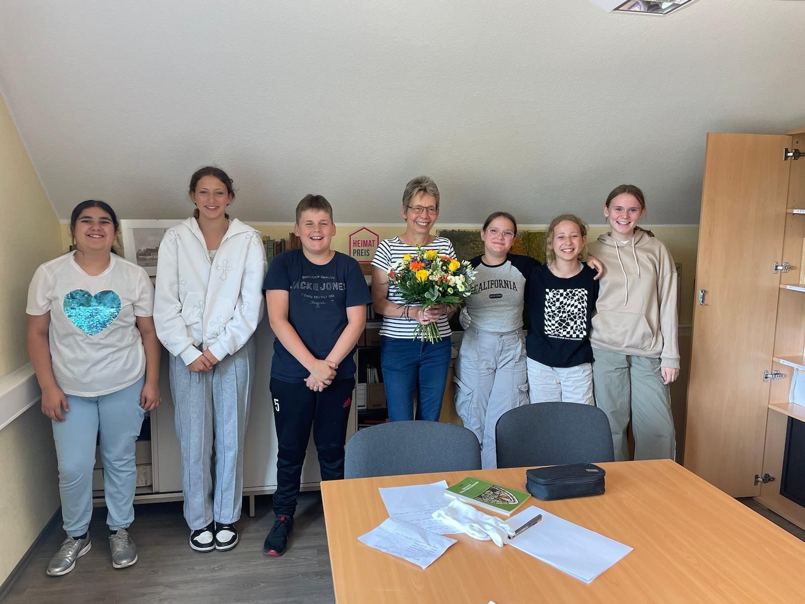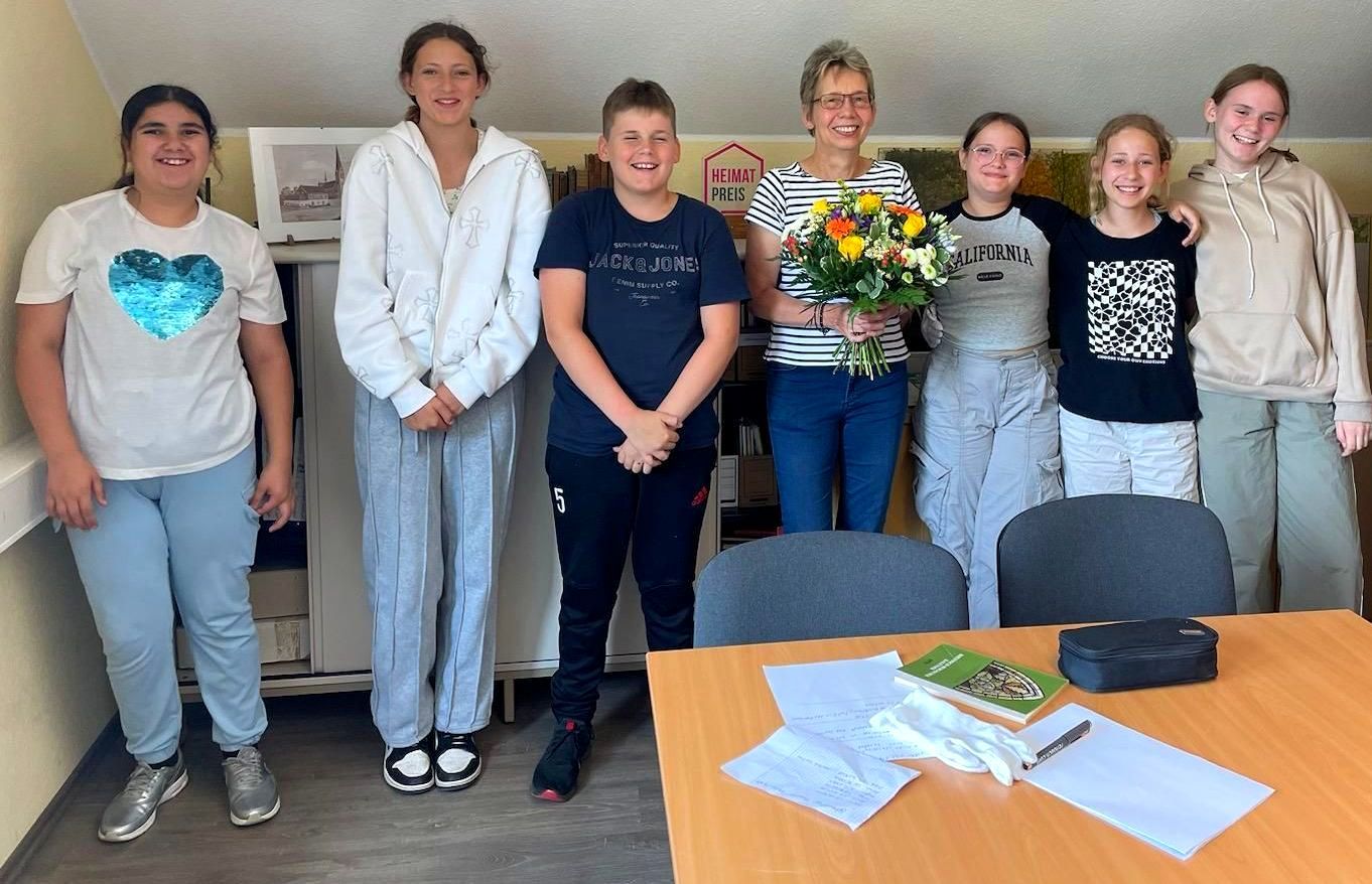 Im Rahmen des Freiday-Projekttages fand sich eine kleine Gruppe von fünf Schülerinnen und einem Schüler mit der Geschichtslehrerin Astrid Wallenfang am 1. Juli in unserem Archiv ein. Sehr interessiert und behutsam schauten sie sich unsere ältesten Schätze und die Bildbände von Kürten in früheren Zeiten an.