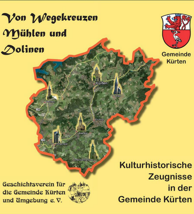 In 2009 hat der Geschichtsverein für die Gemeinde Kürten und Umgebung e.V. im Auftrag der Gemeinde Kürten kulturhistorische Objekte, wie Kirchen und Kapellen, Häuser und Mühlen, Grabsteine und Andachtskreuze erfasst und mit Hilfe der Arbeitsgruppe "Geschichte / Kulturhistorie Leitbild Kürten 2020" in der Broschüre „Kulturhistorische Zeugnisse in der Gemeinde Kürten - Von Wegekreuzen, Mühlen und Dolinen“ zusammengestellt.