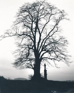 Today, the Bergstraße runs to the left of the old town hall and, after a small bend over the traffic circle, joins the original main route between Kürten and Weiden. The road to Hommermühle now branches off at the beginning of the new development area, where the old lime tree stood, which towered far above the wayside cross from Hommermühle.