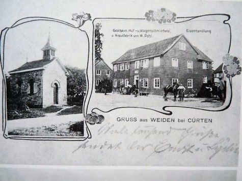 It can be assumed that a place to rest was established next to the chapel at an early date. Around 1715, there were three farms in Weiden. Today's inns "Zur Kapelle" (Adolf Kürten) and "Zur Schmiede" (Wilhelm Pohl) next to the chapel were popular places to stop in the 19th and 20th centuries and were the social center of the village until a few years ago.