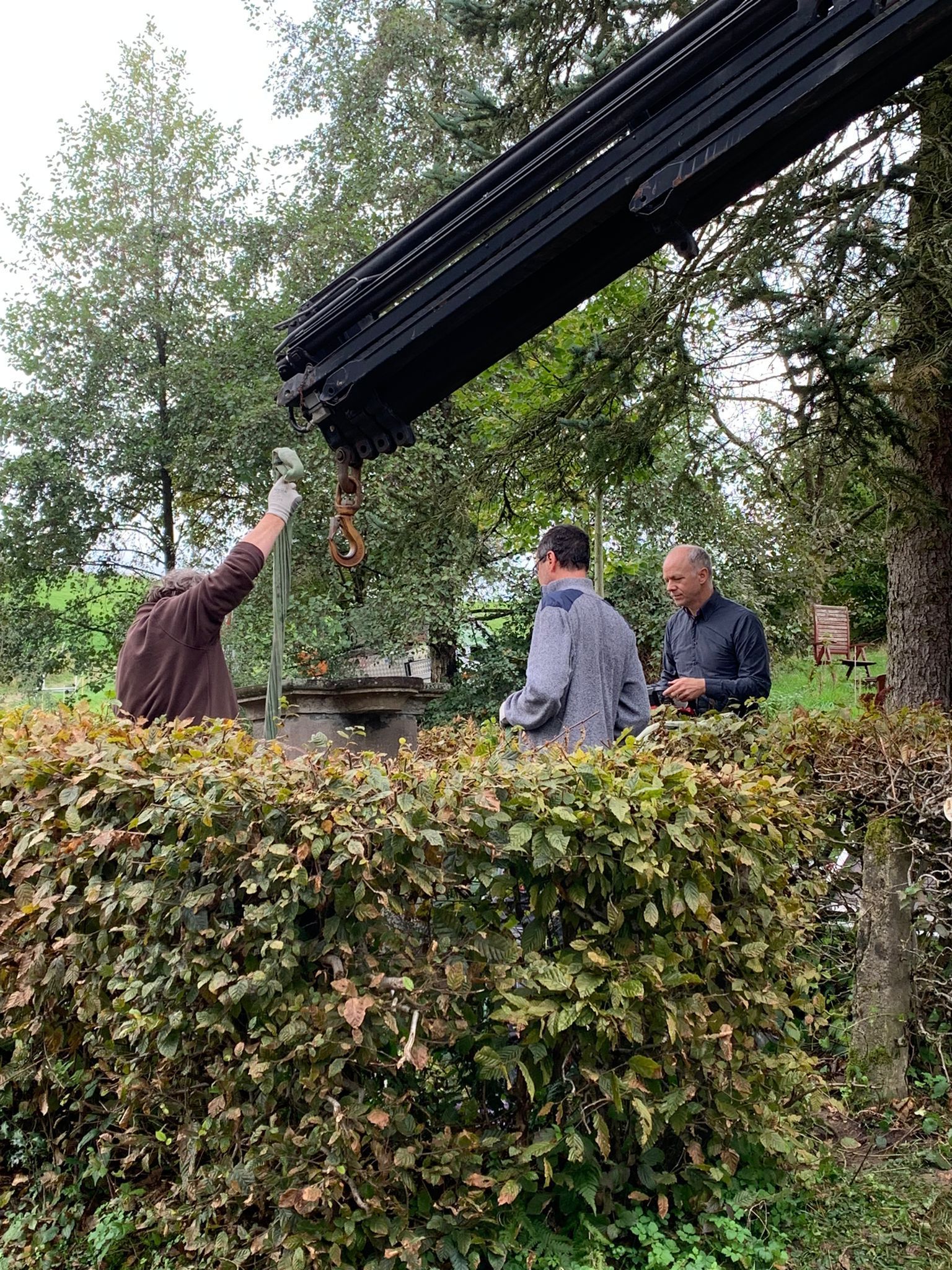 Am frühen Vormittag des 24. Oktobers versammelten sich Mitglieder des Geschichtsvereins sowie interessierte Bürgerinnen und Bürger am Standort des Wegekreuzes. Unter der Anleitung von Fachkräften wurde das Kreuz behutsam von seinem Sockel gelöst und für den sicheren Transport vorbereitet. Besonderes Augenmerk galt dabei der Substanz des Kreuzes und der Erhaltung der verbliebenen Details die seine lange Geschichte widerspiegeln.