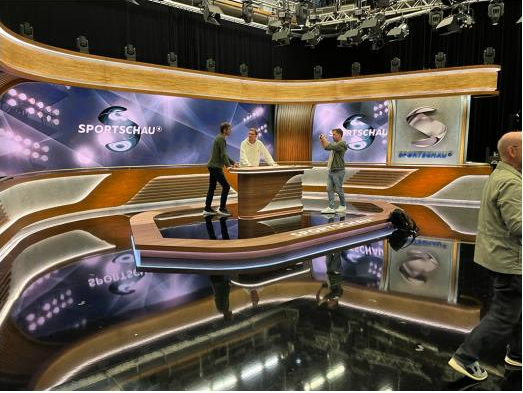 Besuch in einem Studio, aus dem am Abend die Sportschau gesendet wird. Die Vorbereitungen liefen gerade an. Beeindruckend – die Beleuchtungseinheiten an der hohen Decke.