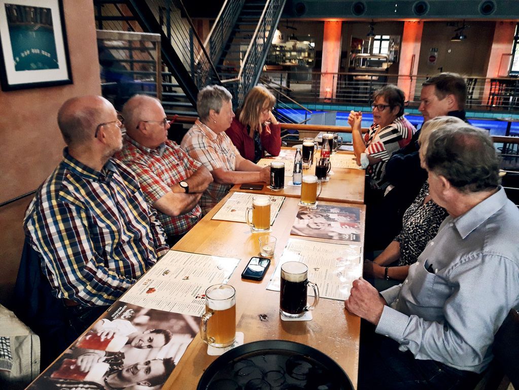 Irgendwann waren wir des Laufens müde und allmählich auch hungrig und durstig. Da freuten sich alle Teilnehmer auf das Wuppertaler Brauhaus. In der angenehmen Atmosphäre des sehr ansprechend gestalteten ehemaligen Schwimmbads genossen wir deftige Speisen und das leckere lokale Bier. Vergessen waren Regen und Pfützen. Nach ausgiebigem Schmaus sparten wir uns weitere Fußwege und fuhren mit der Schwebebahn zum Parkplatz am Zoo und von dort dann mit den PKW nach Hause – um viele Eindrücke reicher und mit einem erweiterten Bild einer sehenswerten Stadt.